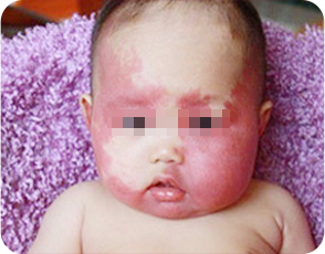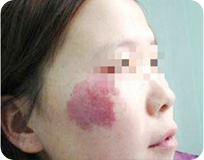 鲜红斑痣又称葡萄酒样痣或毛细血管扩张痣,是无数扩张的毛细血管所组成的较扁平,很少隆起的斑块,属于先天性毛细血管畸形。好发于面、颈部,大多为单侧性、偶为双侧性,有时累积粘膜病灶面积随身体生长而相应增大,若不通过医学技术手段修复,便终生不会消退。